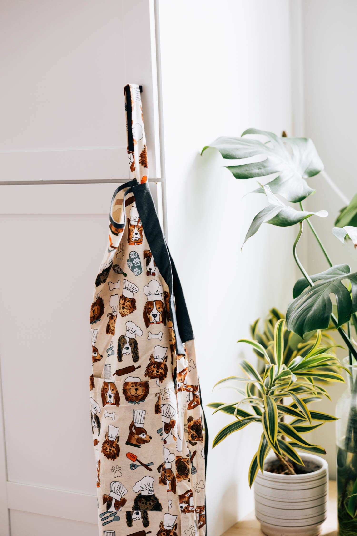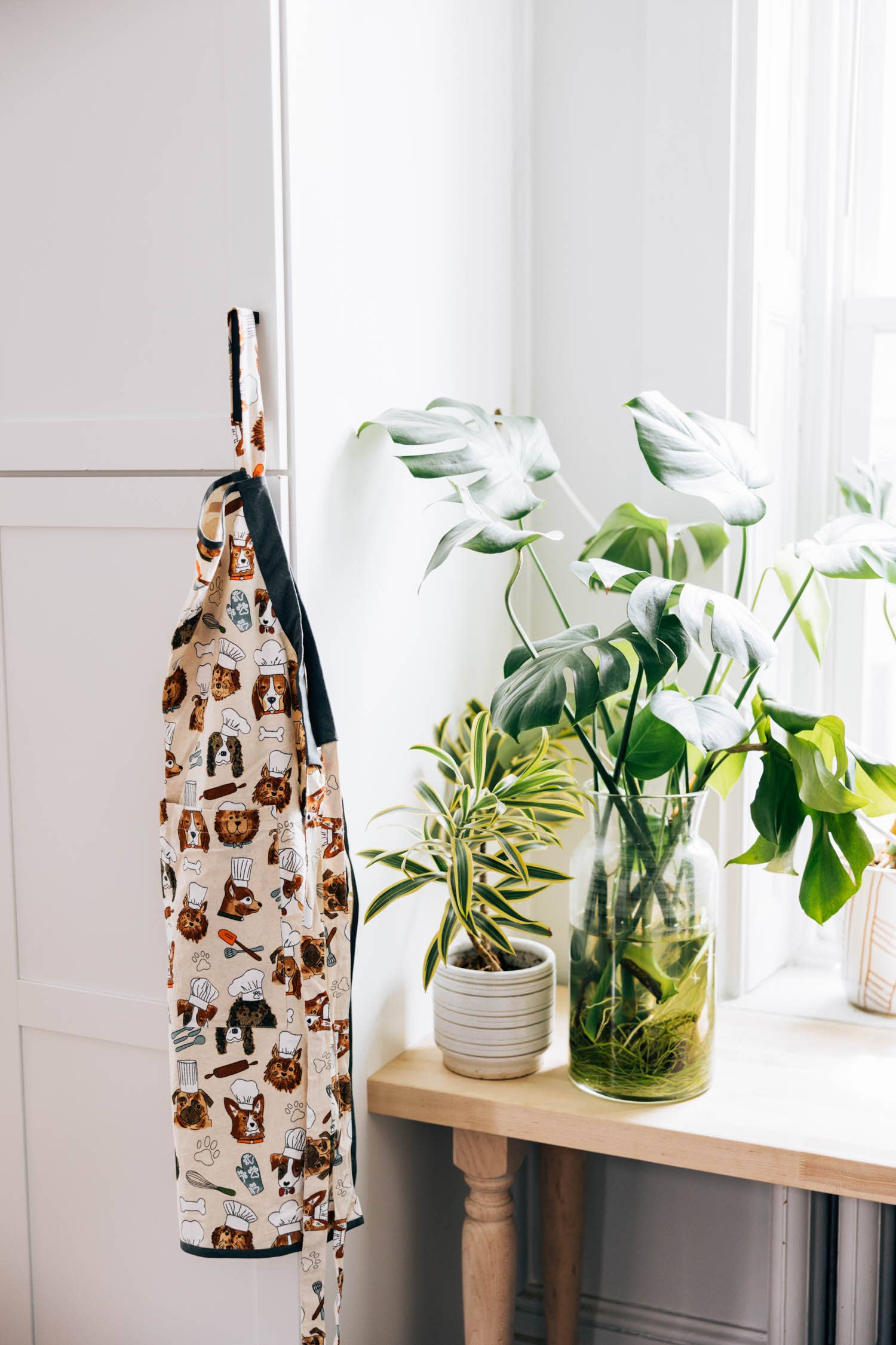 In collaboration with The Tote Project, a social enterprise working to empower victims of human trafficking, we bring you the Dog Chefs Apron! Featuring dogs with chef hats, bones, paw prints and kitchen utensils, this apron and its sister products — a tea towel and an oven mitt — are here for those folks who can't get enough of (wo)man's best friend. Features an adjustable tie and a large center pocket for your phone and utensils.